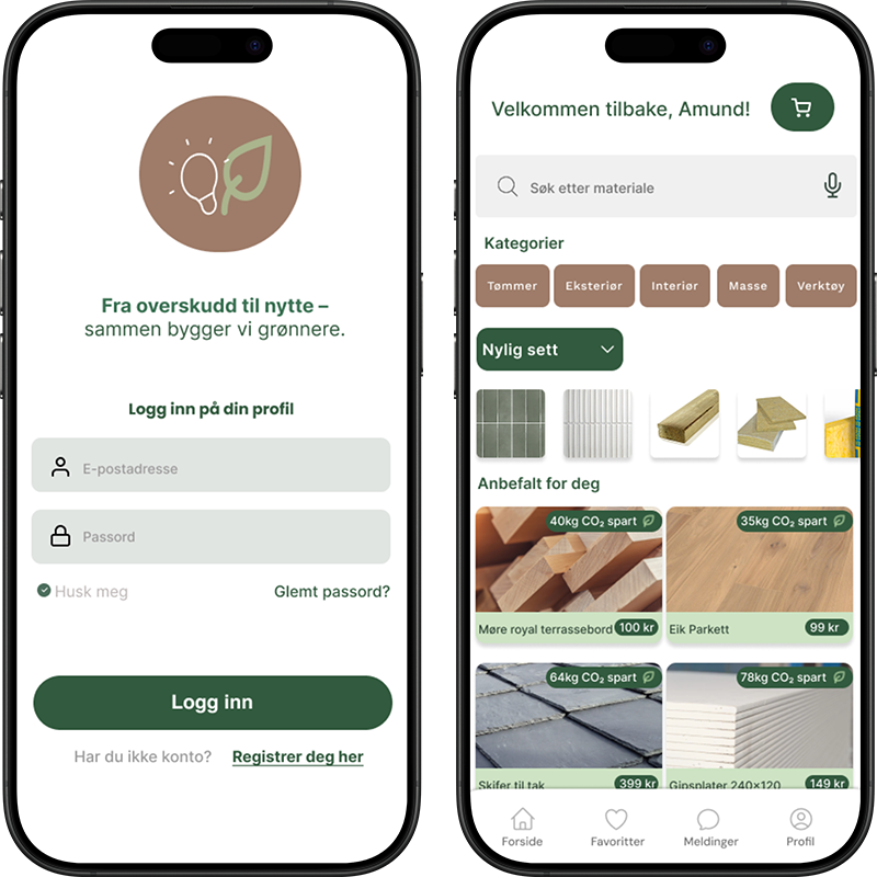 Et appkonsept som kobler bedrifter med overskuddsmaterialer til folk som pusser opp eller bygger
