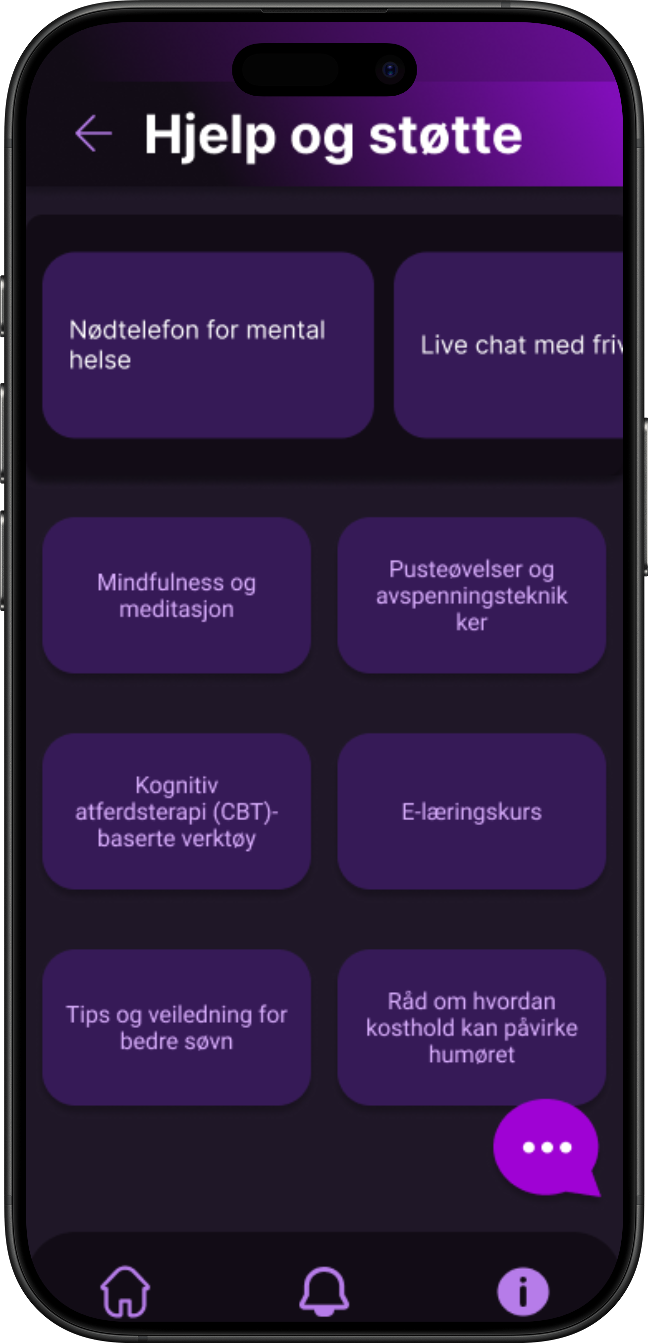 AI-chatbot (lukket modell) for støtte 24/7 + krisefunksjon