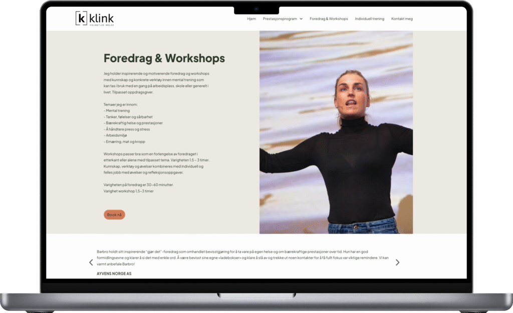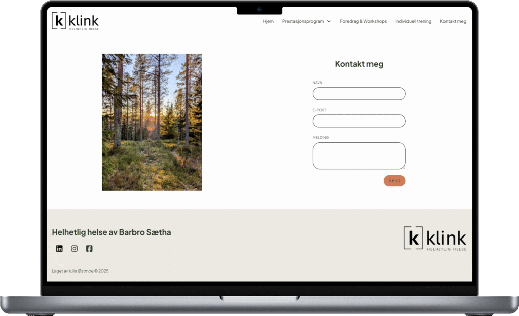 Gjennom løpende dialog og iterasjoner med oppdragsgiver ble løsningen kontinuerlig justert, før den ble implementert i WordPress (Bricks). Resultatet ble en moderne, tydelig og brukervennlig nettside som styrker Klinks digitale identitet.