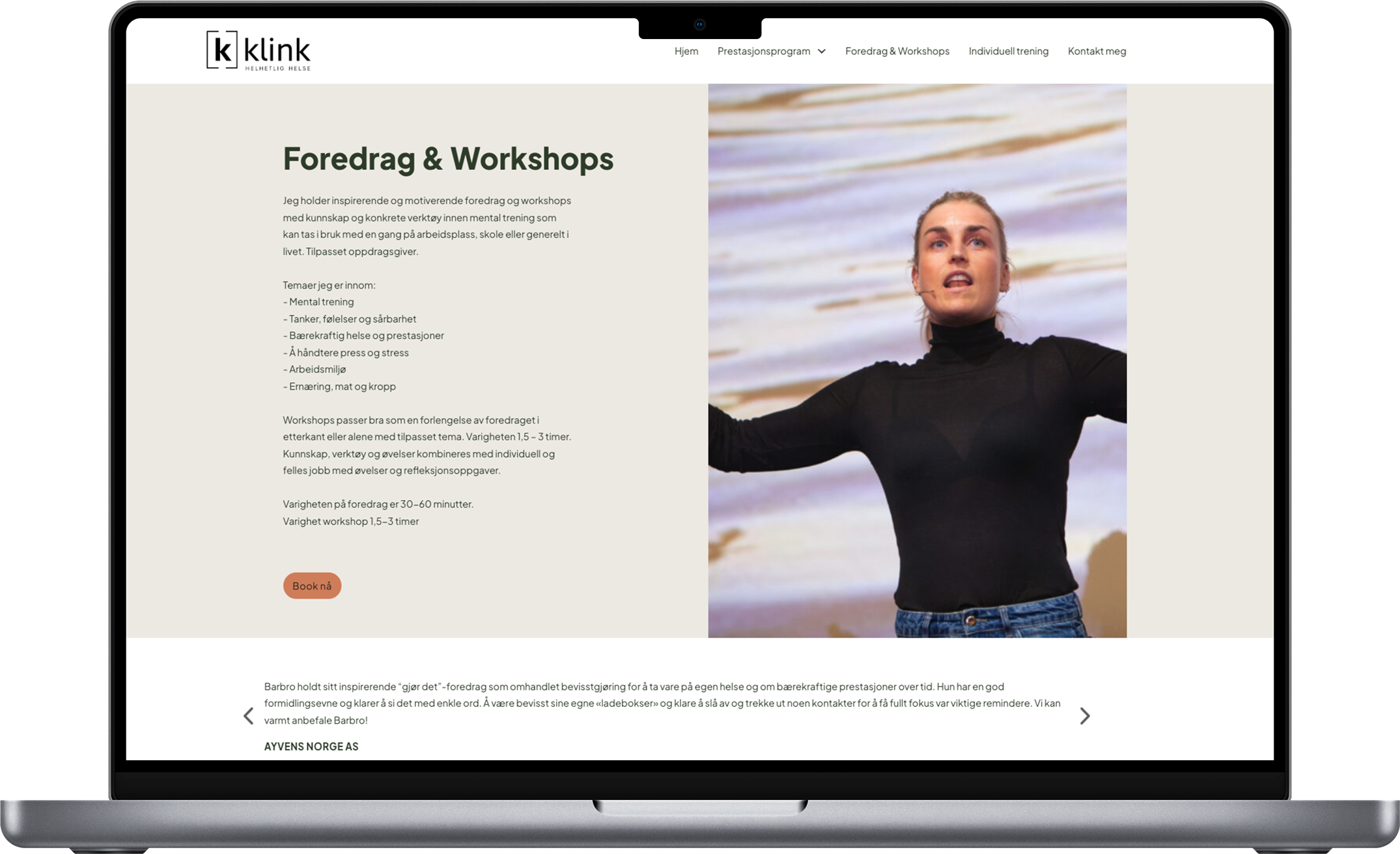 Gjennom løpende dialog og iterasjoner med oppdragsgiver ble løsningen kontinuerlig justert, før den ble implementert i WordPress (Bricks). Resultatet ble en moderne, tydelig og brukervennlig nettside som styrker Klinks digitale identitet.